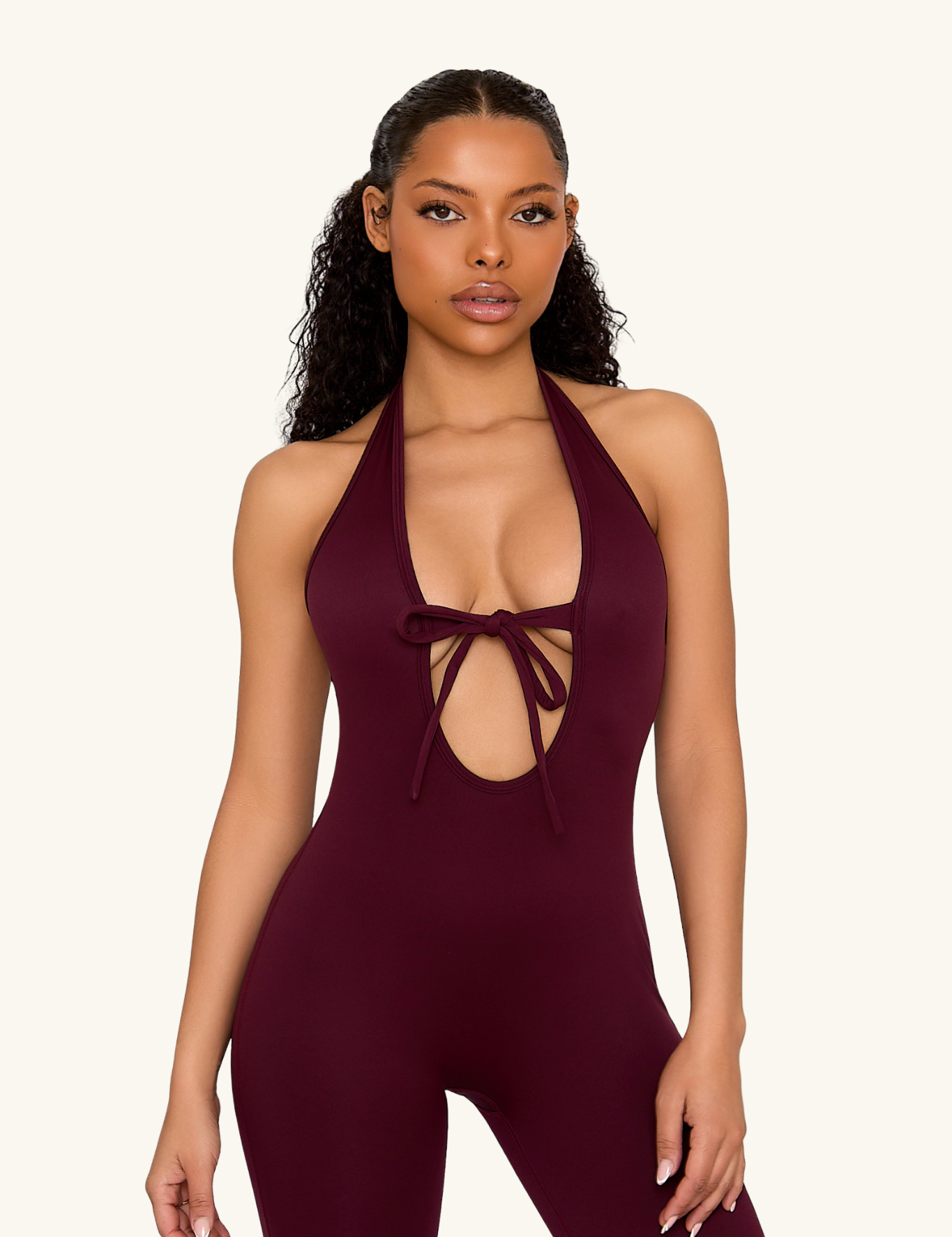 Burgundy Bow Tie Jumpsuit