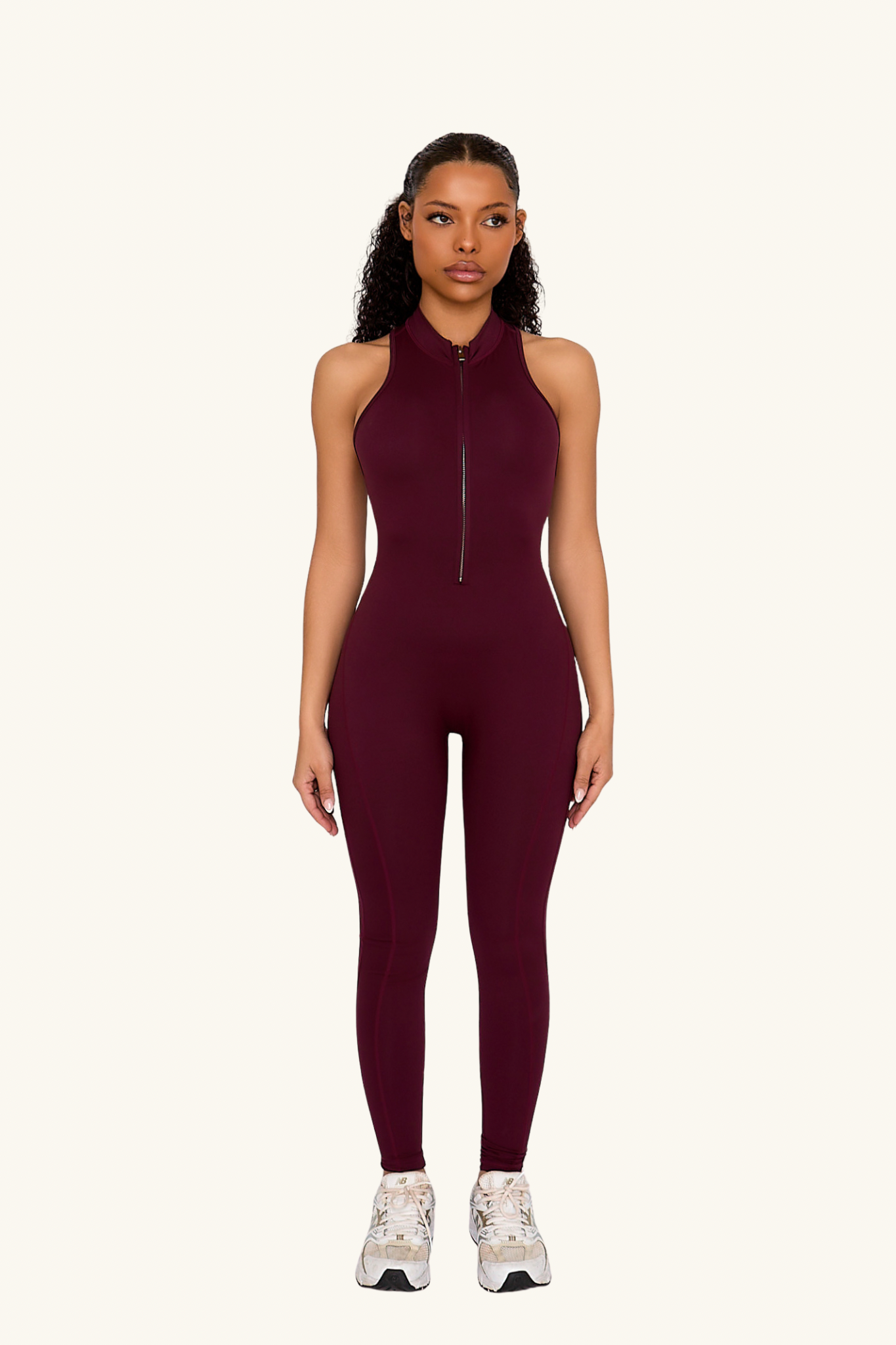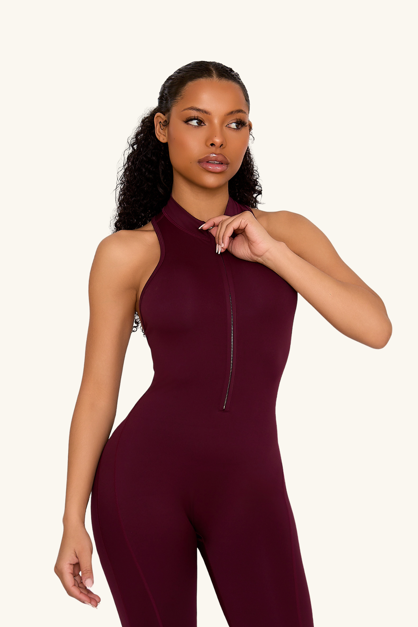 For those who love a sleek, sporty aesthetic look, this jumpsuit is for you. Featuring a premium silver zip, an open-back design, and strategic paneling that enhances curves, this piece is both functional and stylish.
