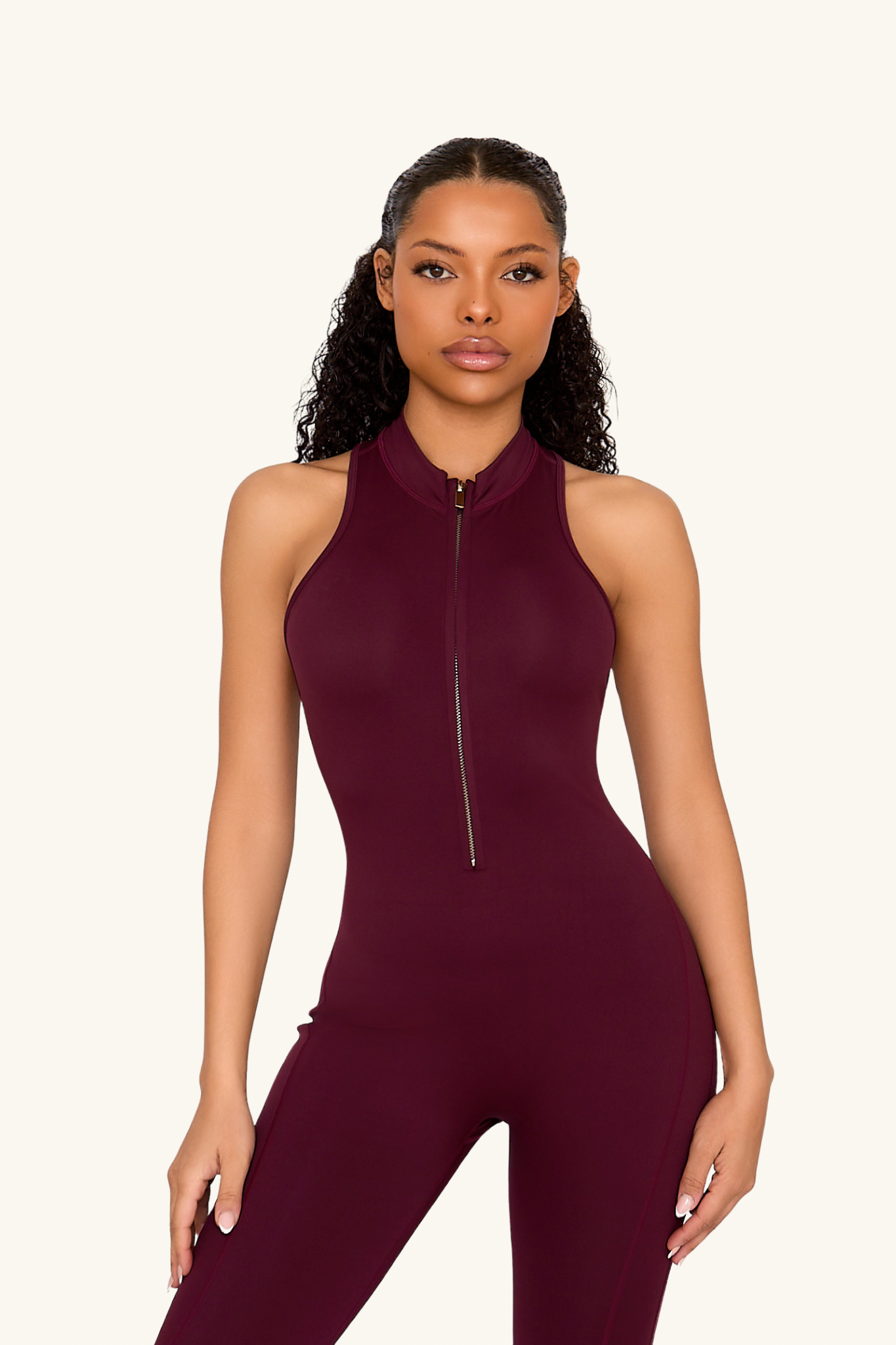 Burgundy Zip Jumpsuit
