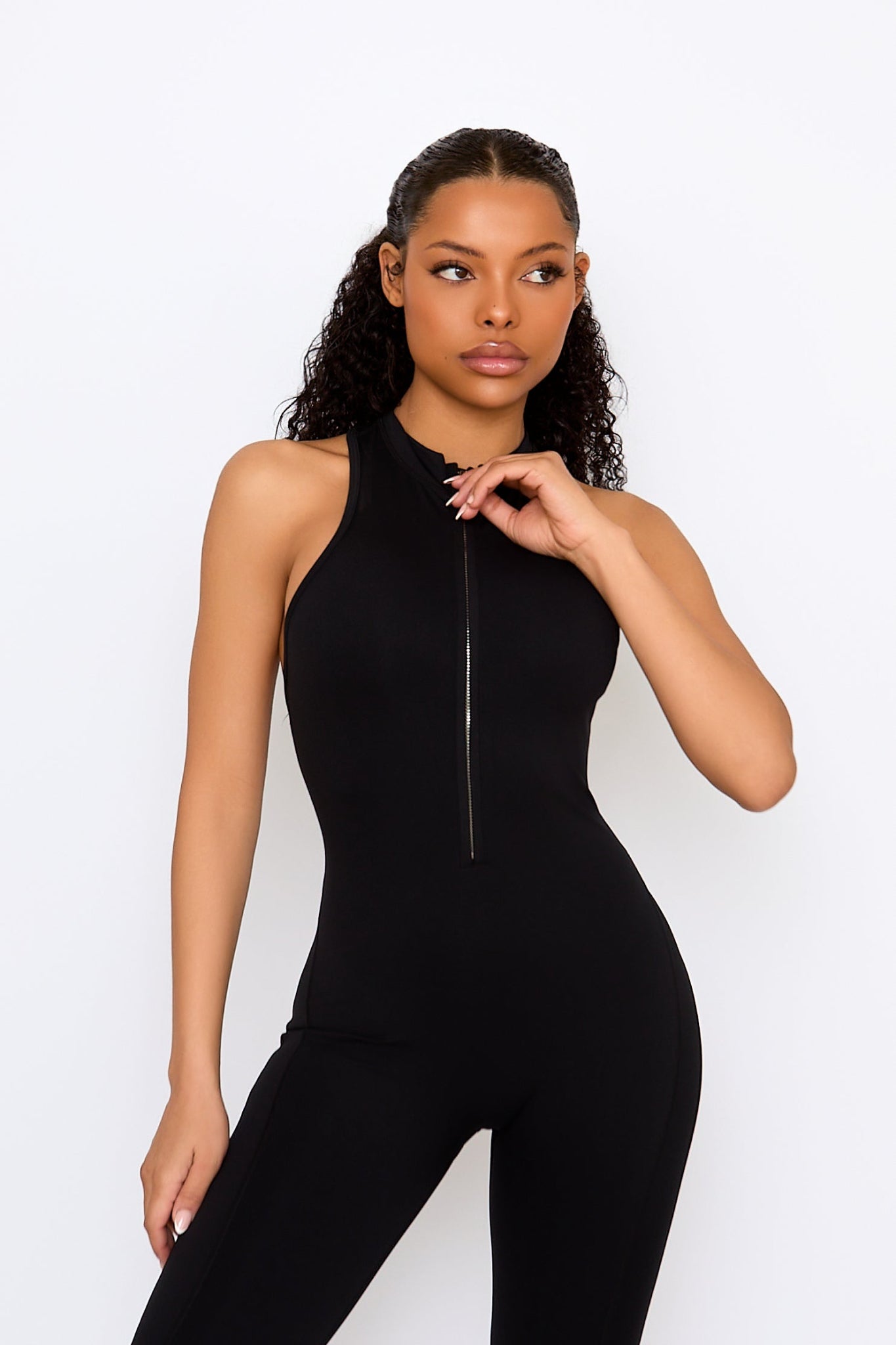 For those who love a sleek, sporty aesthetic look, this jumpsuit is for you. Featuring a premium silver zip, an open-back design, and strategic paneling that enhances curves, this piece is both functional and stylish.